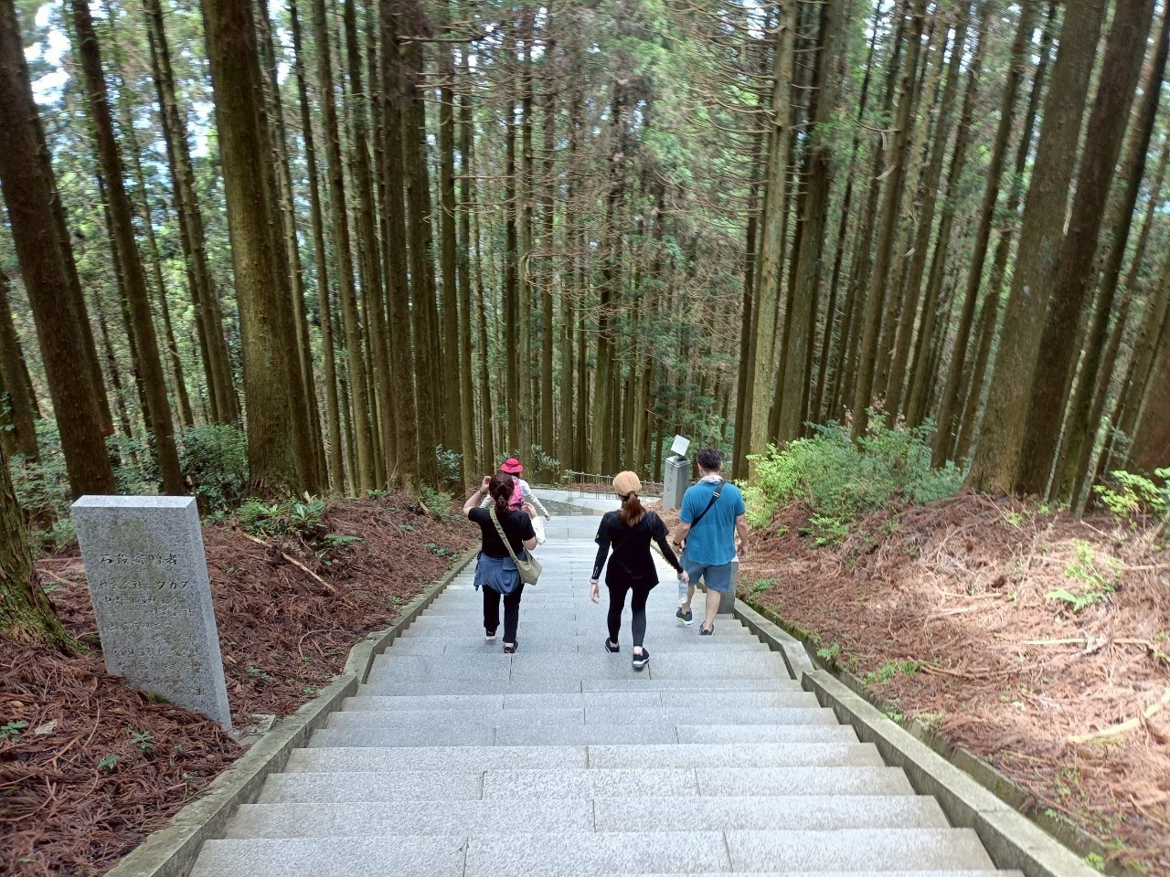 途中、100段ごとに設置された石碑が励みとなり、休憩を挟みながら一歩一歩進みました。